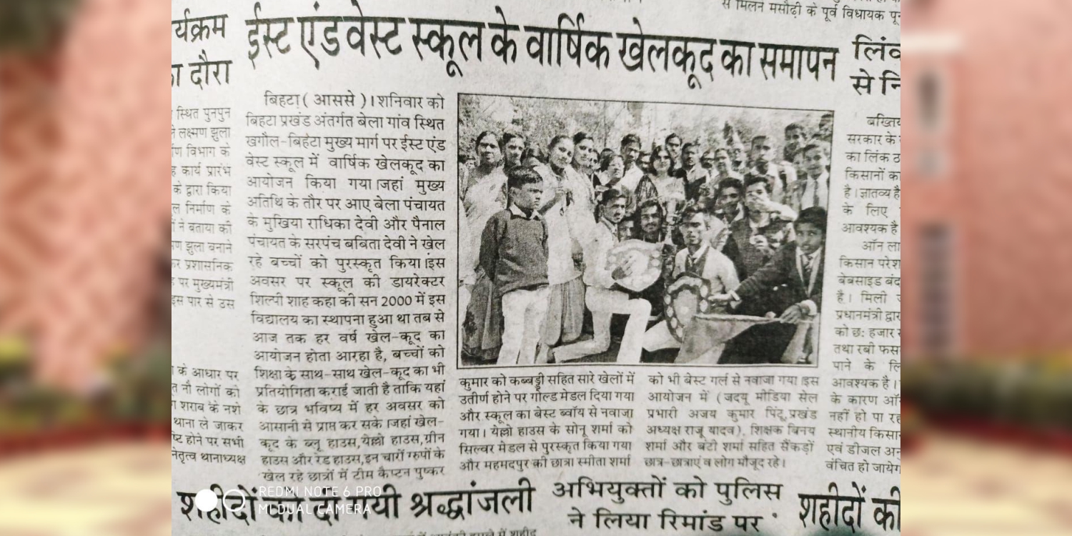 (Late) Shri Vinay Kanth laid the foundation of East & West High School, a premier CBSE affiliated institution, and with his Blessings the school was founded in the 1979 by a handful of academicians in concort with person concerned about the education of the very young.The School became subsequently the nucleus of the EWHS society in 1987.Later on this school shifted from Patna to its new abode at village Bela in december 2000.soon in the year 2001 ,the School was granted affiliation by the C.B.S.E New Delhi.It took no time for the school to become a hub for a range in the activities in area including the Prativesh Maitree Programme,With the beginning of the current session ,Bifurcating the existing school a primary school has been launched which is intended to be more community-oriented and function in the spirit of Right to Education(RTE) enshrined in the new legislation on the subject.